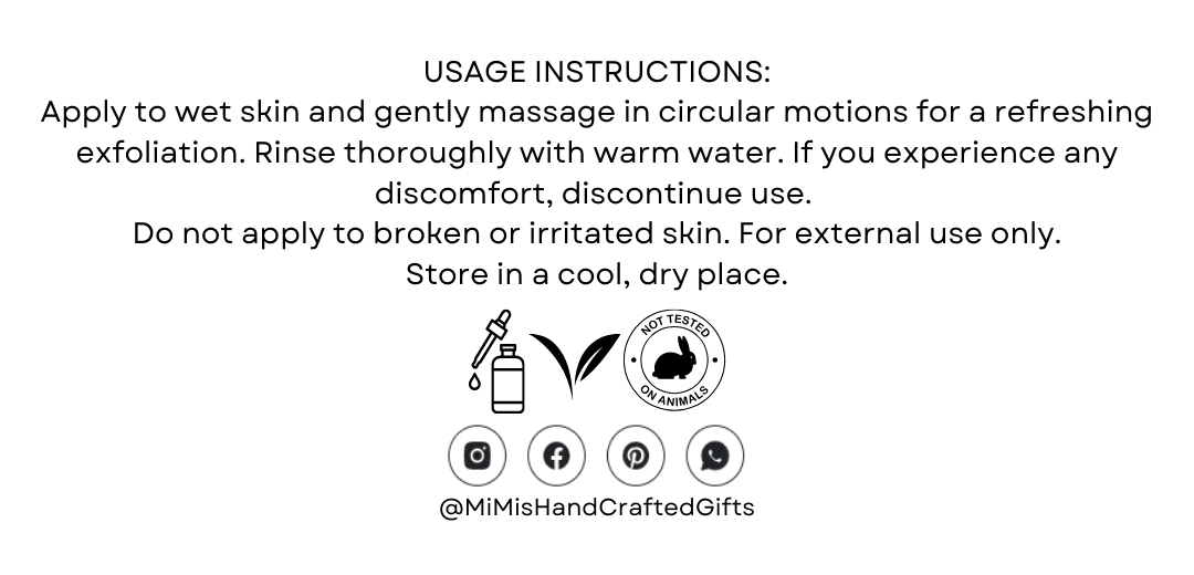 - Shelf Life: To ensure you experience the full benefits of our body scrub, including its delightful scent and effective exfoliation, we recommend using it within 6 months of opening.