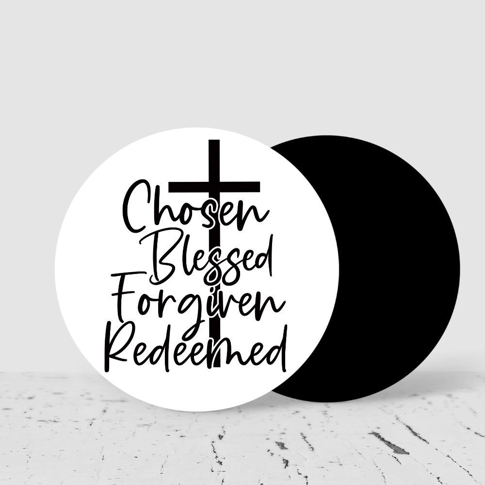 Chosen Blessed Forgiven Redeemed Coaster – Christian Faith-Based Home Decor | Inspirational Drink Coaster