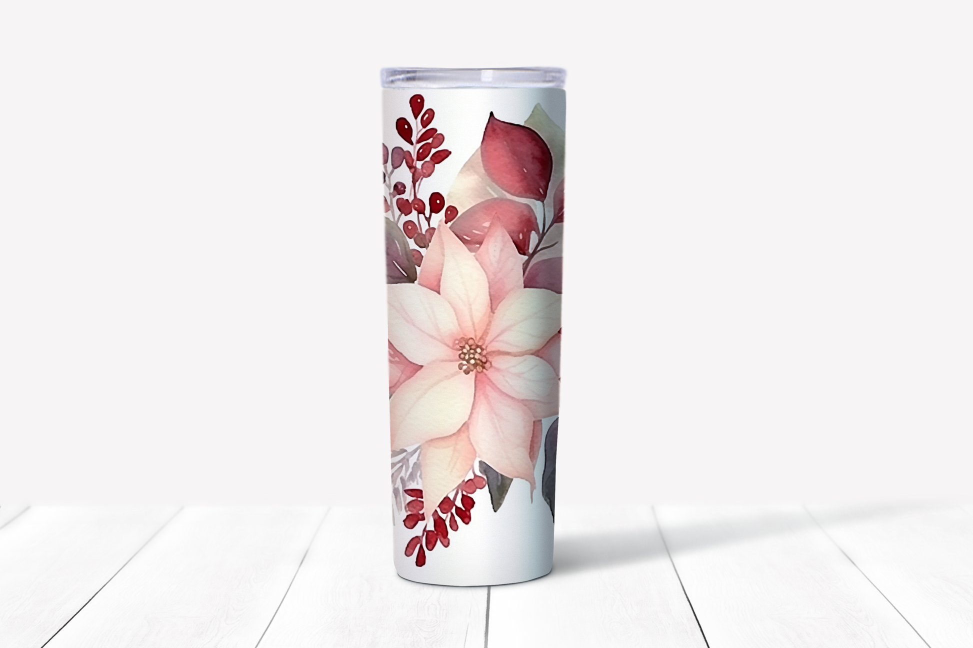 Celebrate the holiday season with our Christmas Poinsettia tumblers, available in four distinctive designs. Crafted from durable 304 stainless steel with double-wall insulation, these tumblers keep your drinks hot for up to 5 hours or cold for 12 hours. Their spill-resistant lids and dishwasher-safe construction make them both practical and easy to care for. Perfect for festive gatherings or cozy winter moments, these tumblers are a stylish and reliable companion throughout the holidays.