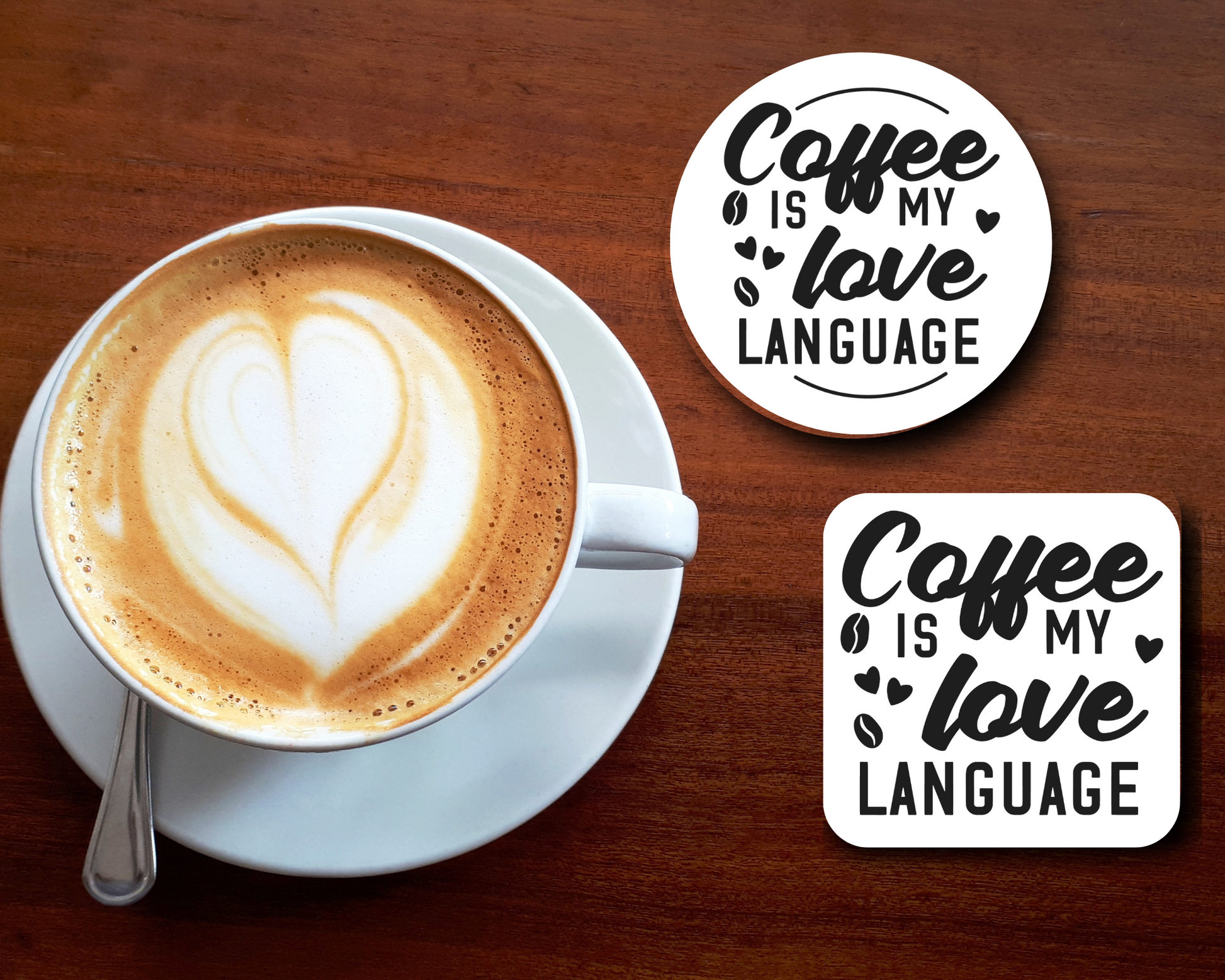 Coffee Is My Love Language Coaster – Cute Coffee Quote Gift | Coffee Bar Decor Drink Coaster