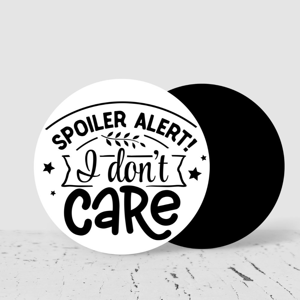 Spoiler Alert I Don’t Care Coaster – Sarcastic Humor Gift | Funny Quote Drink Coaster for Office or Home