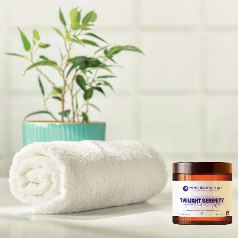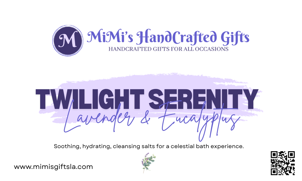 Indulge in Twilight Serenity Bath Salts, a luxurious blend featuring real lavender buds, calming eucalyptus, and pure essential oils. Immerse yourself in a warm bath and let the soothing aromas transport you to deep relaxation.