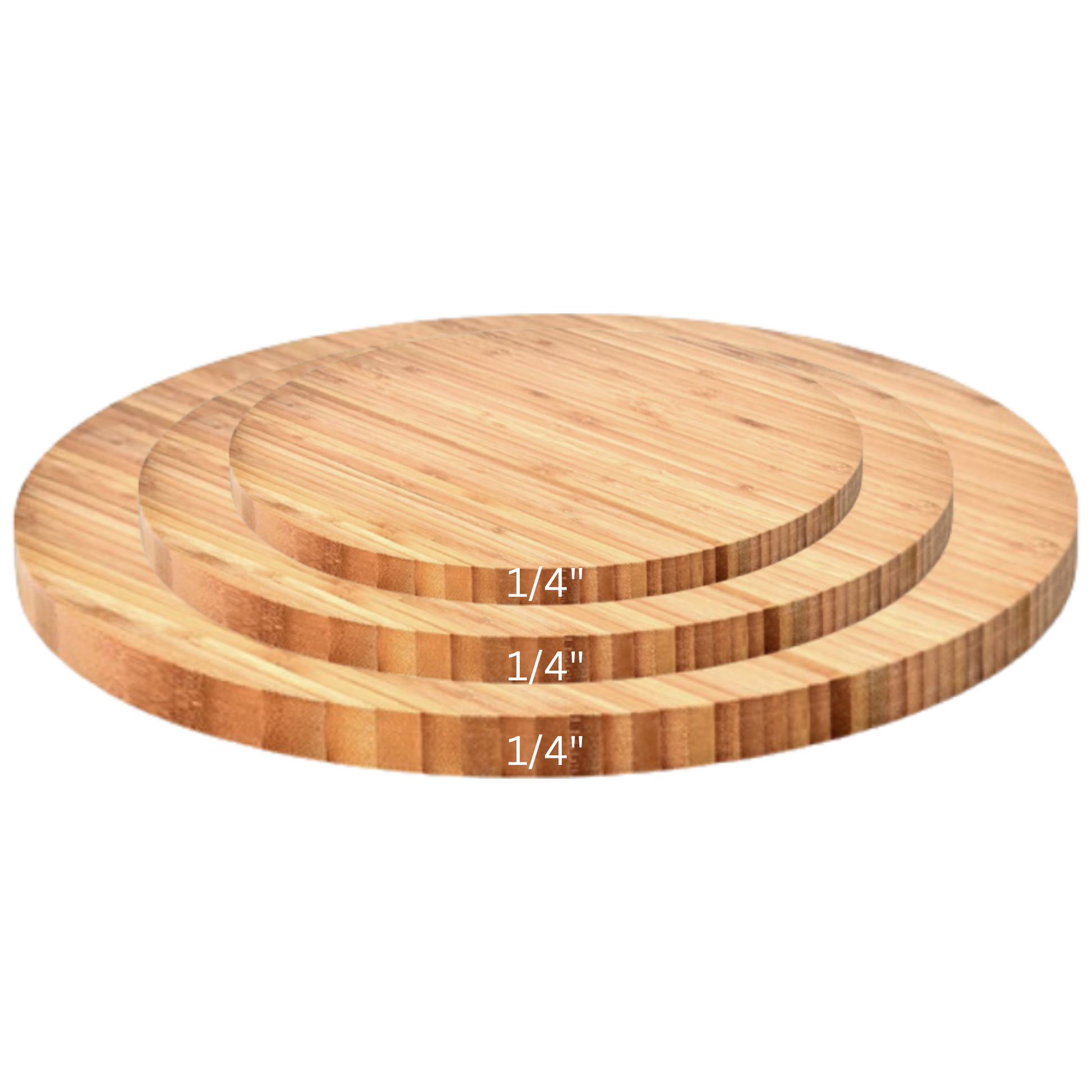 - Size Options: Available in 12", 14", and 16" diameters. Each 1/4-inch thick solid wood.